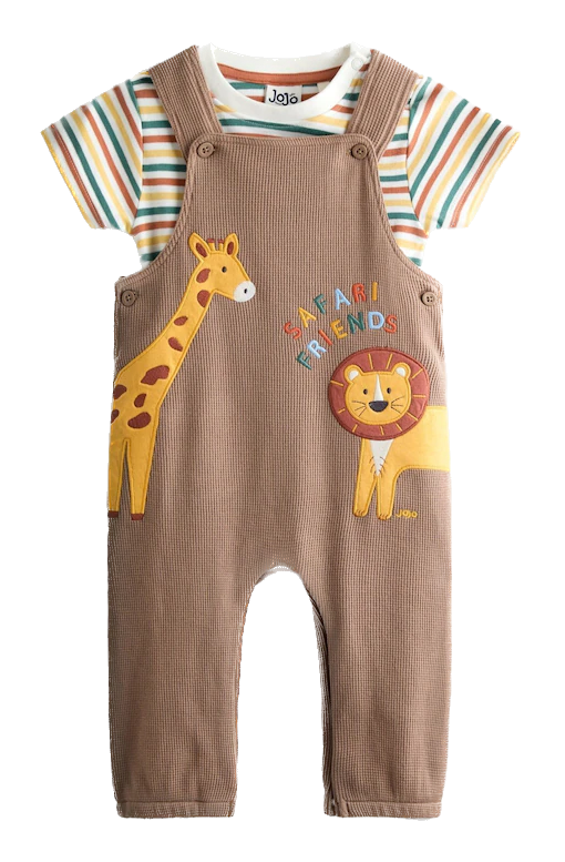 Ghaflox Mummy Baby Brown Safari 2-Piece Applique Dungaree and Top Set